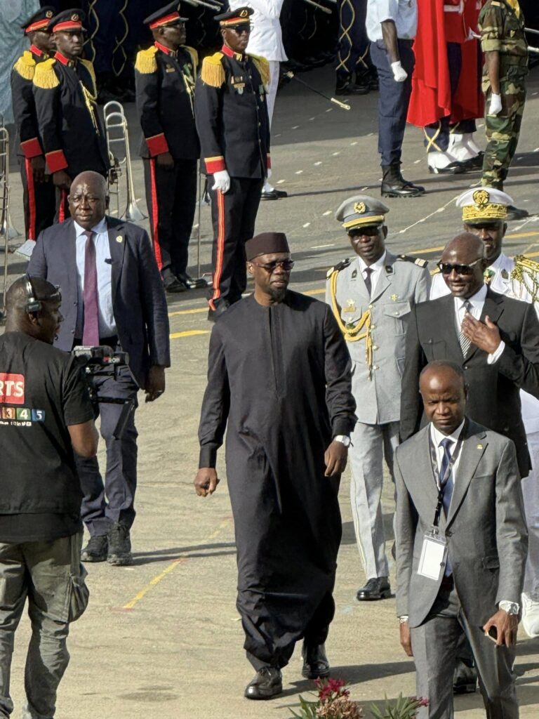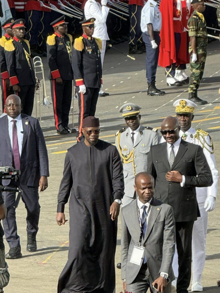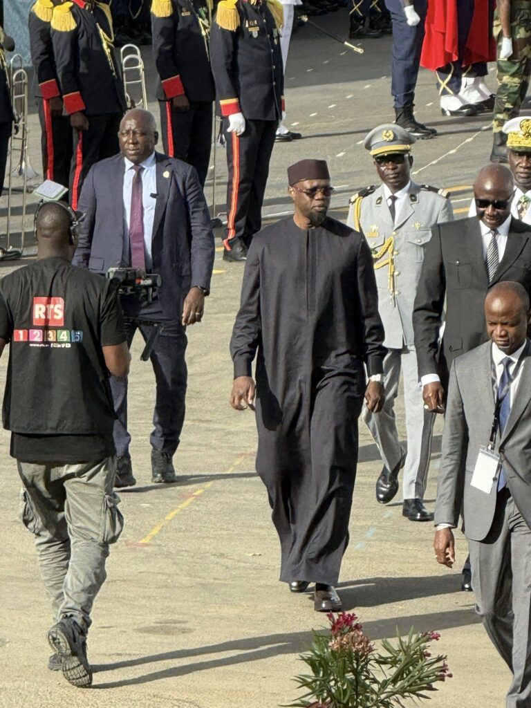 Le Premier ministre Ousmane Sonko est arrivé peu après 8 h 55 à la Place Mamadou Dia, accompagné du ministre des Forces armées, le général Birame Diop. La tribune officielle avait été préparée pour accueillir les autorités, tandis qu’avant leur arrivée, le vice-amiral d’escadre et chef d’état-major des armées, Oumar Wade, accompagné du commandant de la zone militaire 7, avait procédé à la revue des troupes.