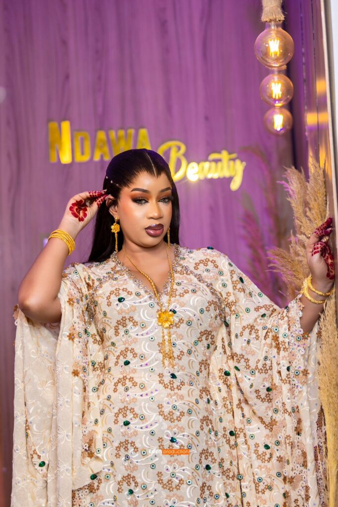 Lors du baptême de son fils, Mme Telecom a fait chavirer les cœurs par sa beauté angélique. Un maquillage doux, un henné délicatement dessiné, un éventail à la main. Fatima, telle une reine, s’est imposée avec classe et éclat.